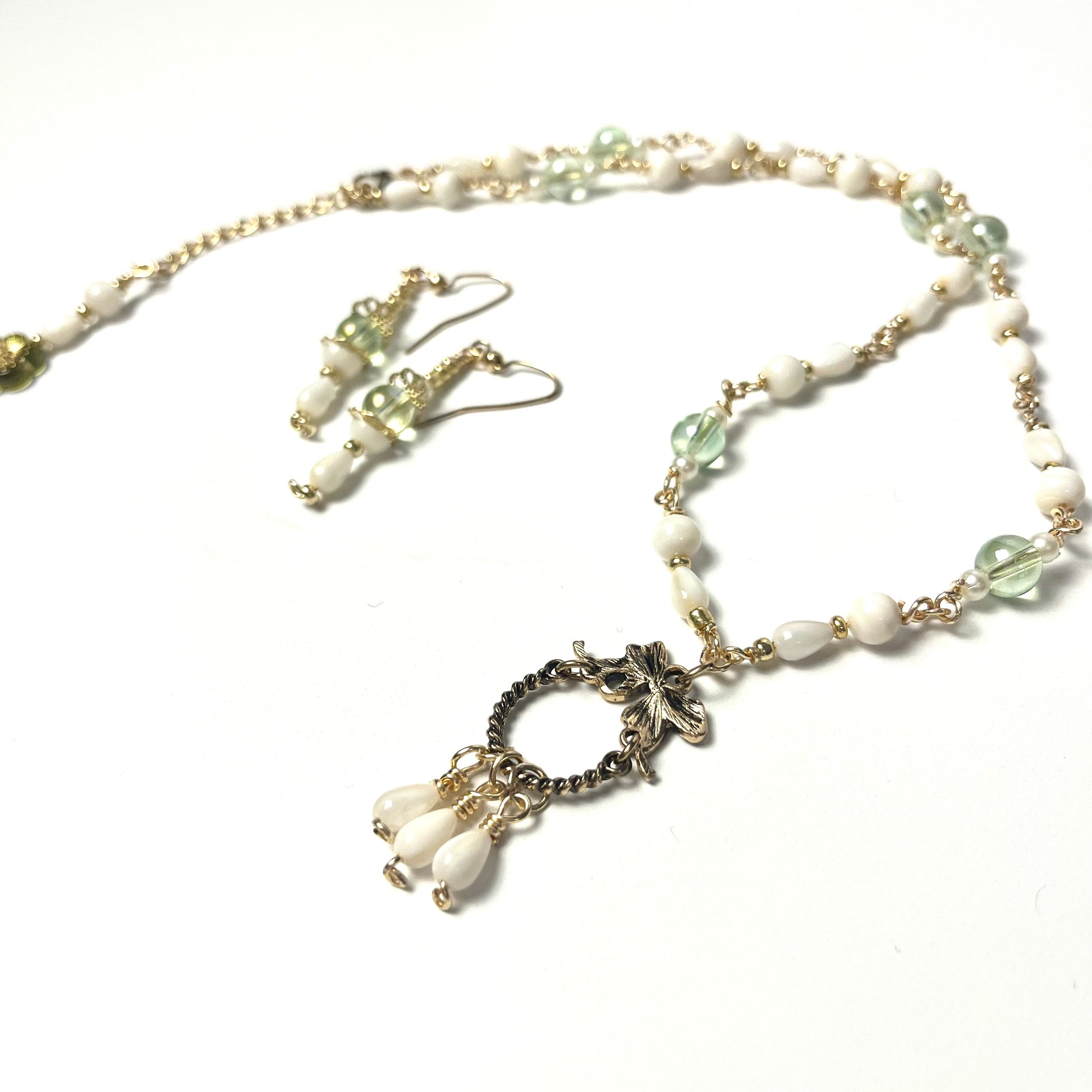 Anne Boleyn Green and Seashell Necklace and Earring set