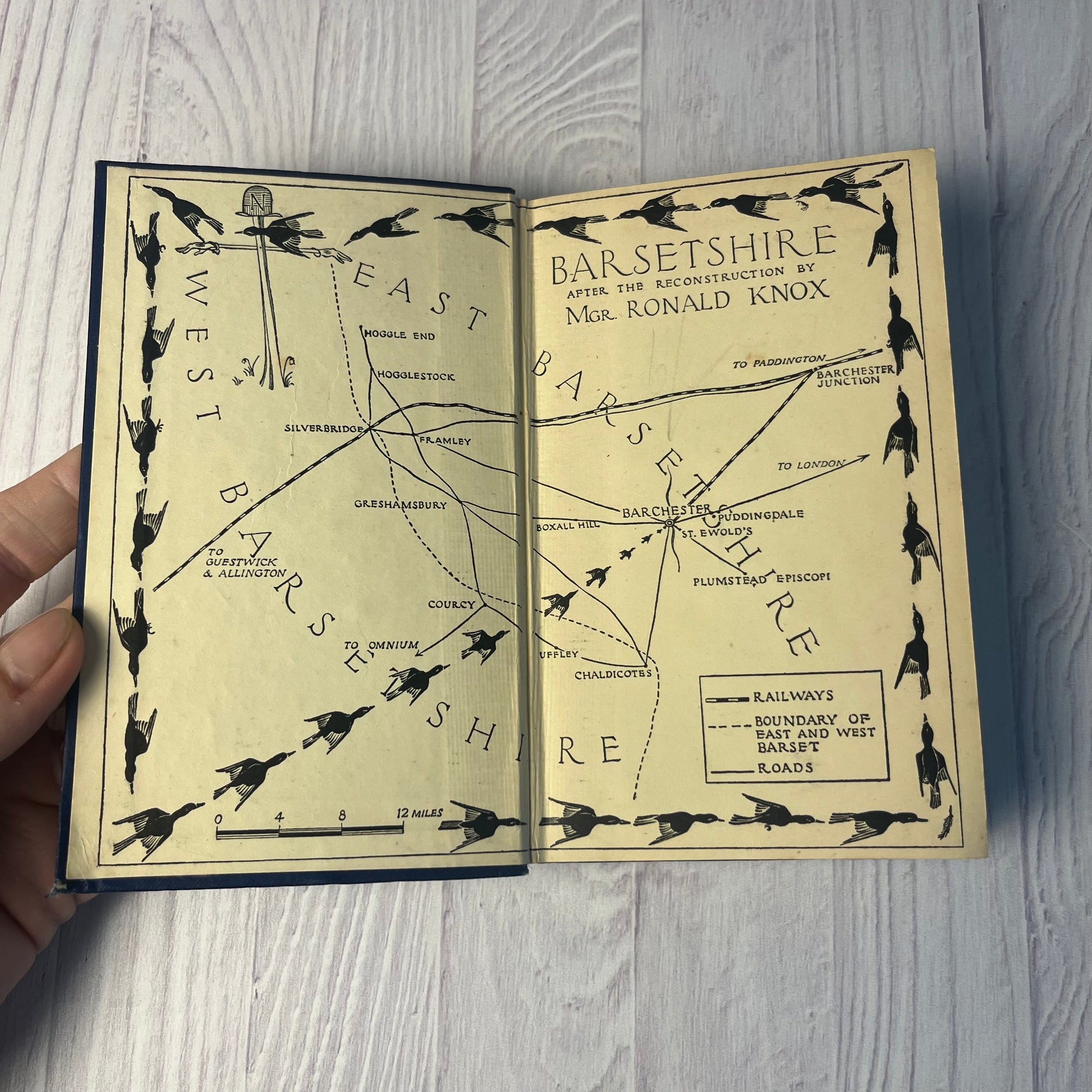This 1942 Oxford University Press edition of Barchester Towers is a petite treasure, measuring just 4" x 6". Bound in blue cloth with gold embossed lettering, it has the dignified charm of a well-kept vintage volume. Inside the front cover, a lovely map adds a thoughtful touch for readers. Purchased at a Paris thrift shop, it carries a bit of travel romance along with its literary pedigree.