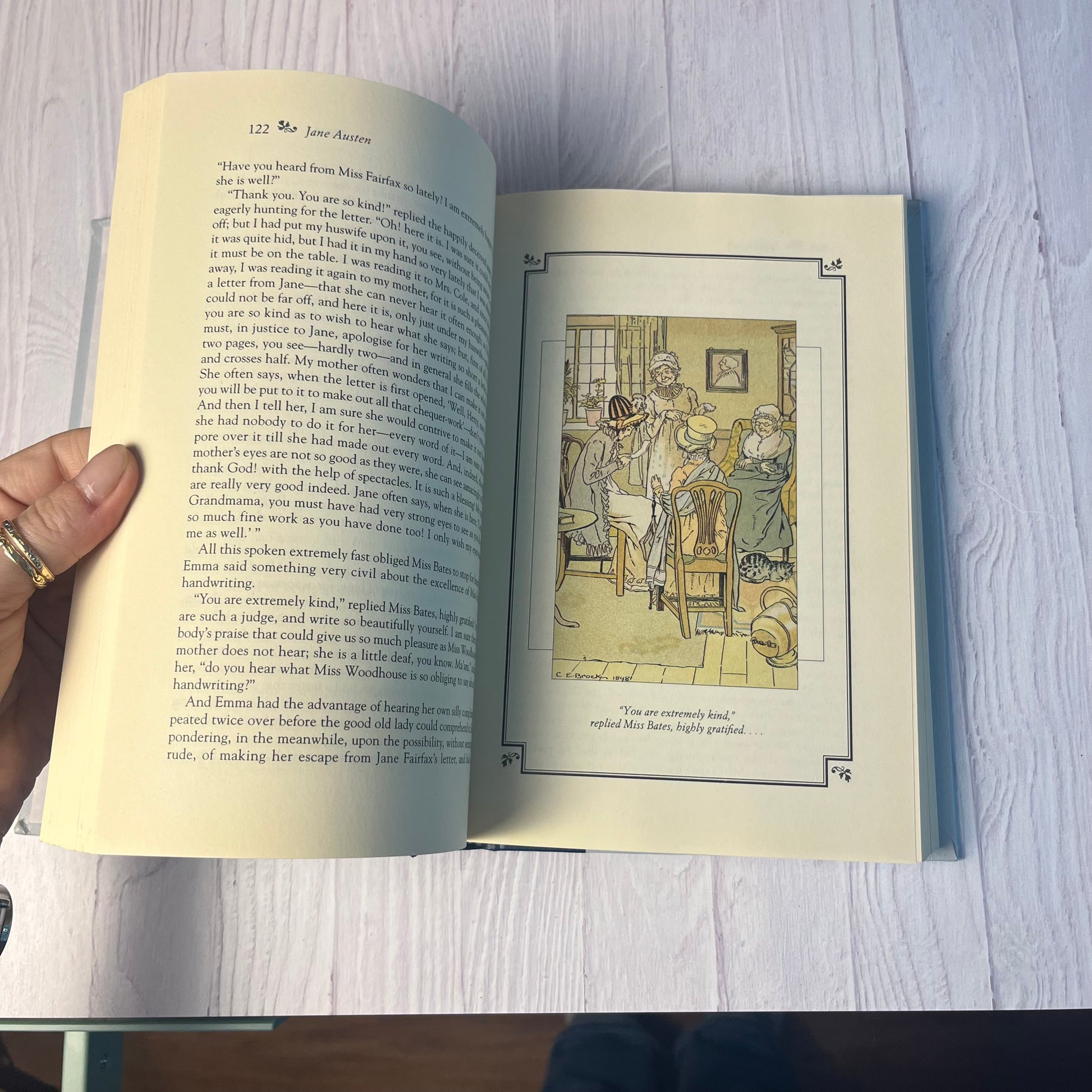 This 1994 Reader’s Digest edition of Emma is a beautifully bound hardcover, featuring gold detailing and a charming illustrated cover. Measuring 9" x 6", it is in like-new condition and includes lovely interior illustrations that bring Austen’s classic to life.