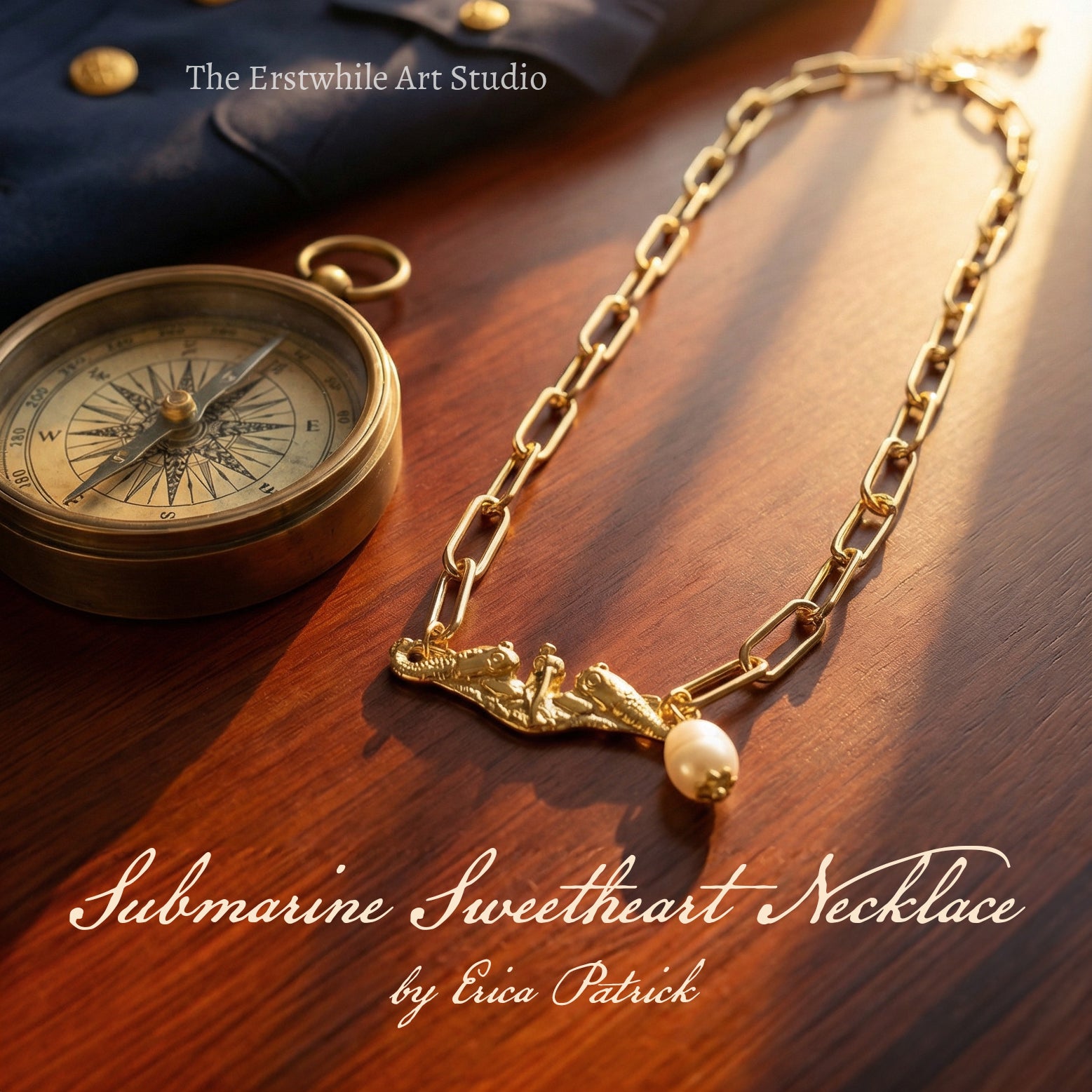 The pendant is set on a chunky gold chain, bold yet feminine, making it both a statement piece and a keepsake. Each necklace is handcrafted by a submariner’s spouse, making it not only jewelry but also a piece of shared story and community.