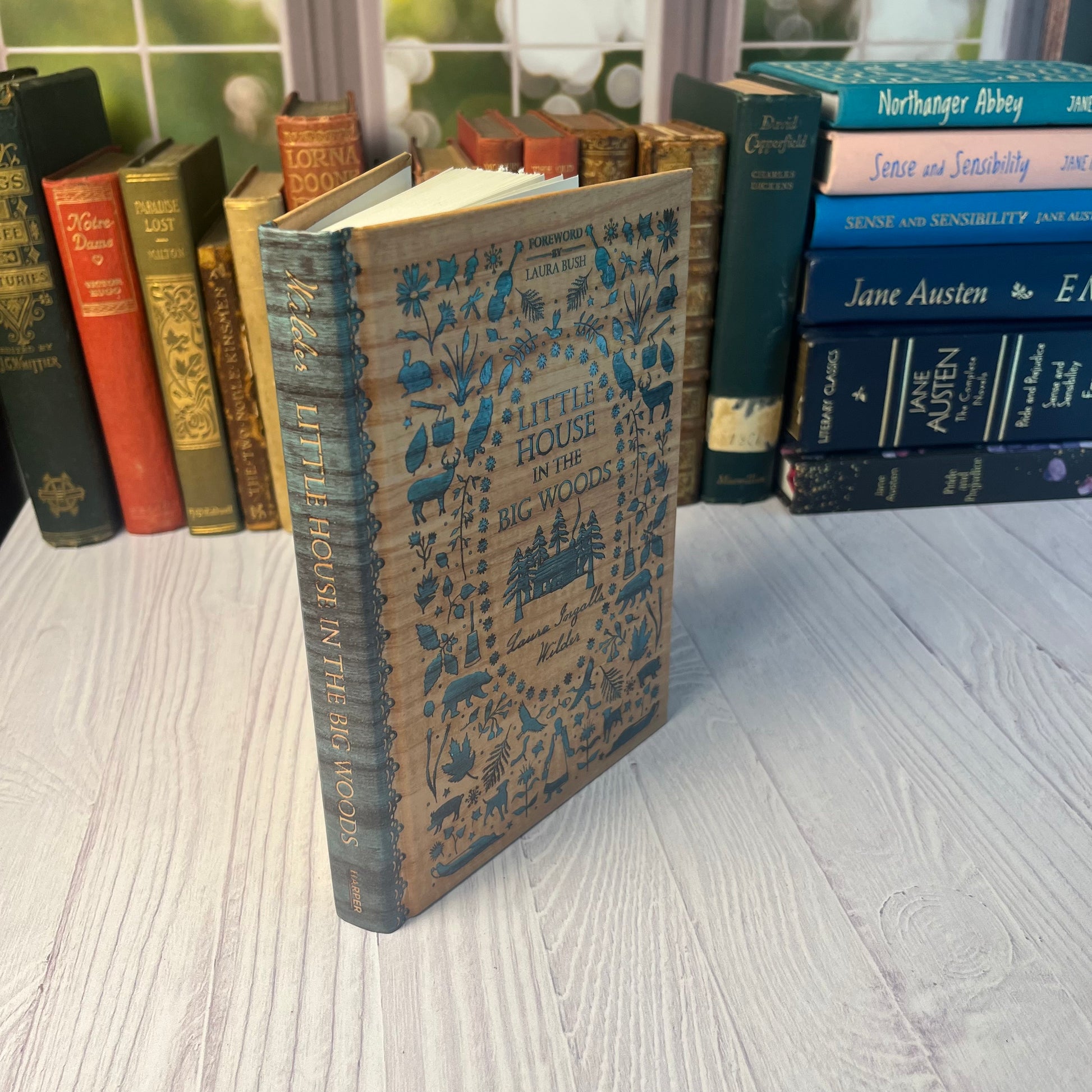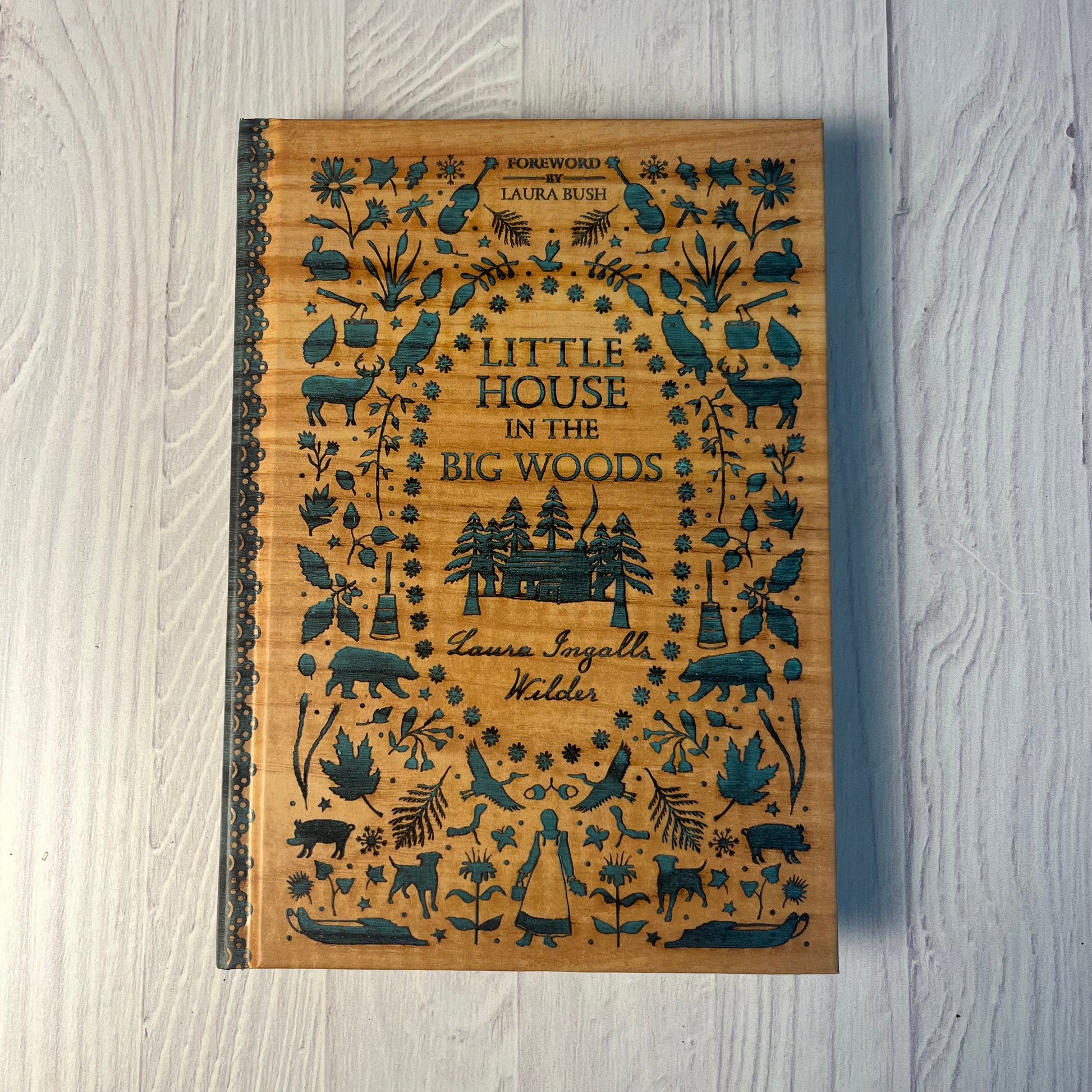 This 2017 hardcover printing of Little House in the Big Woods, the first in Laura Ingalls Wilder’s beloved series, is a beautiful edition in nearly new condition. Rescued from a local used bookstore, it appears unread—the spine remains stiff, and aside from a tiny pin-sized mark on the back cover, it is pristine.