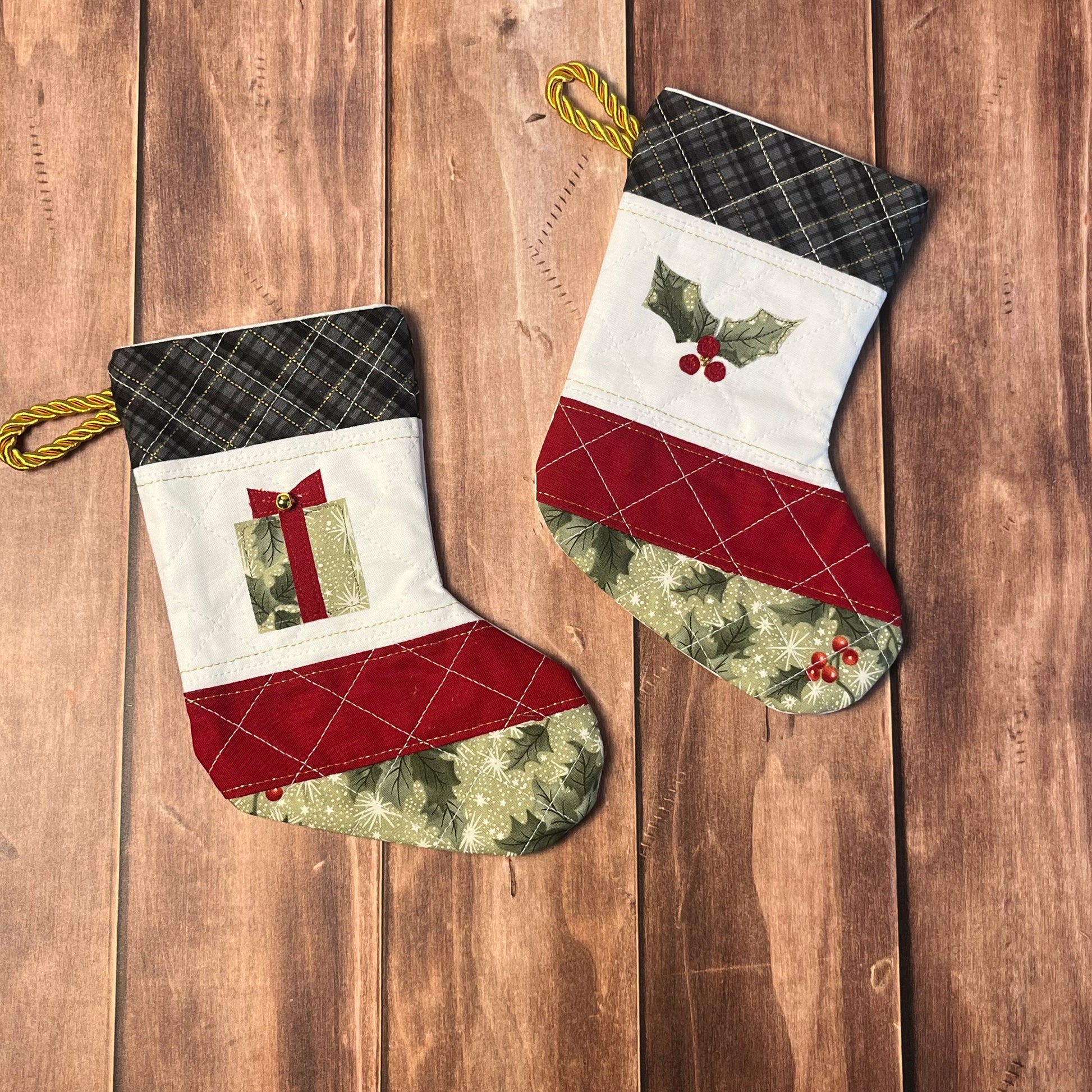Mini Stockings - Classic Christmas Set of Two (Present and Holly)
