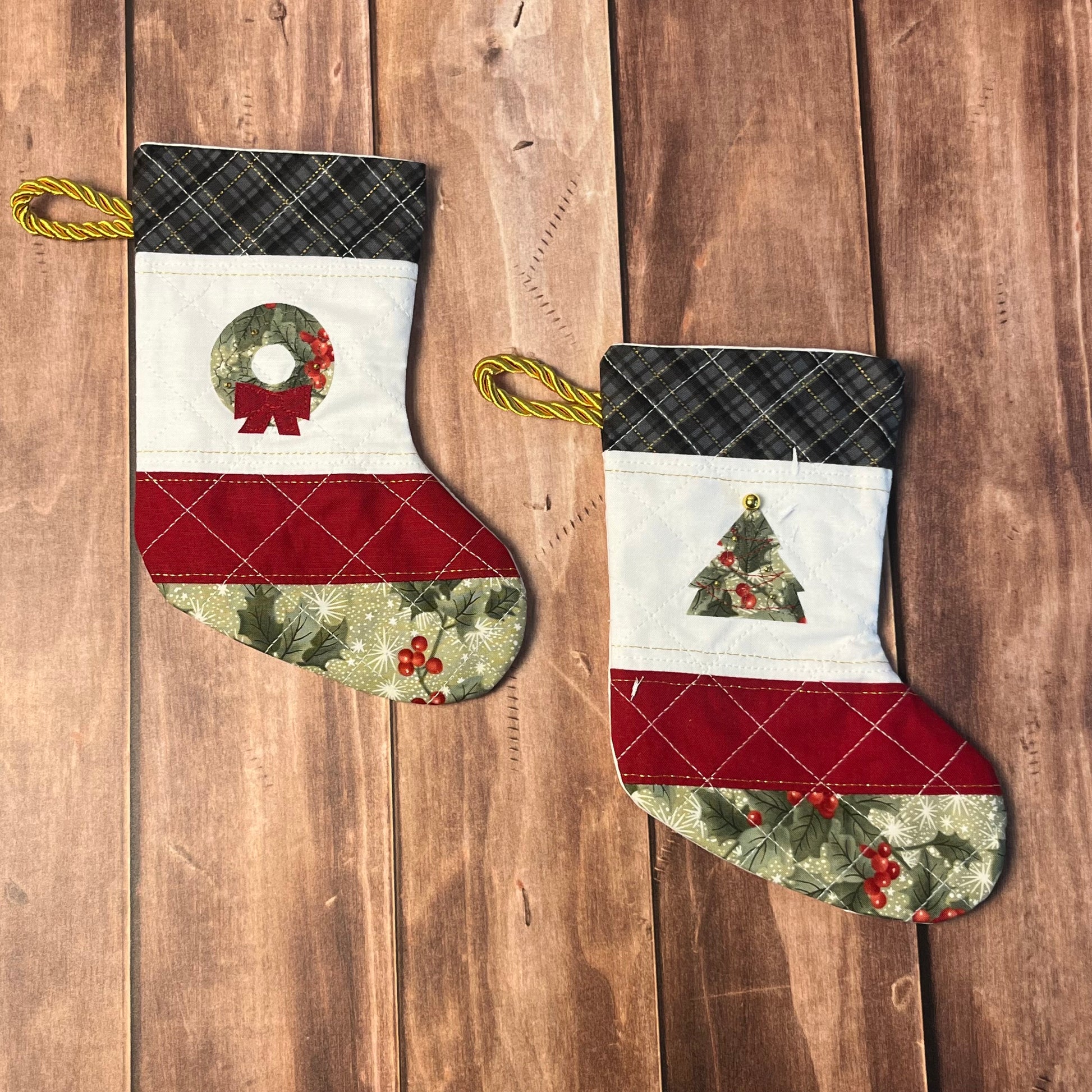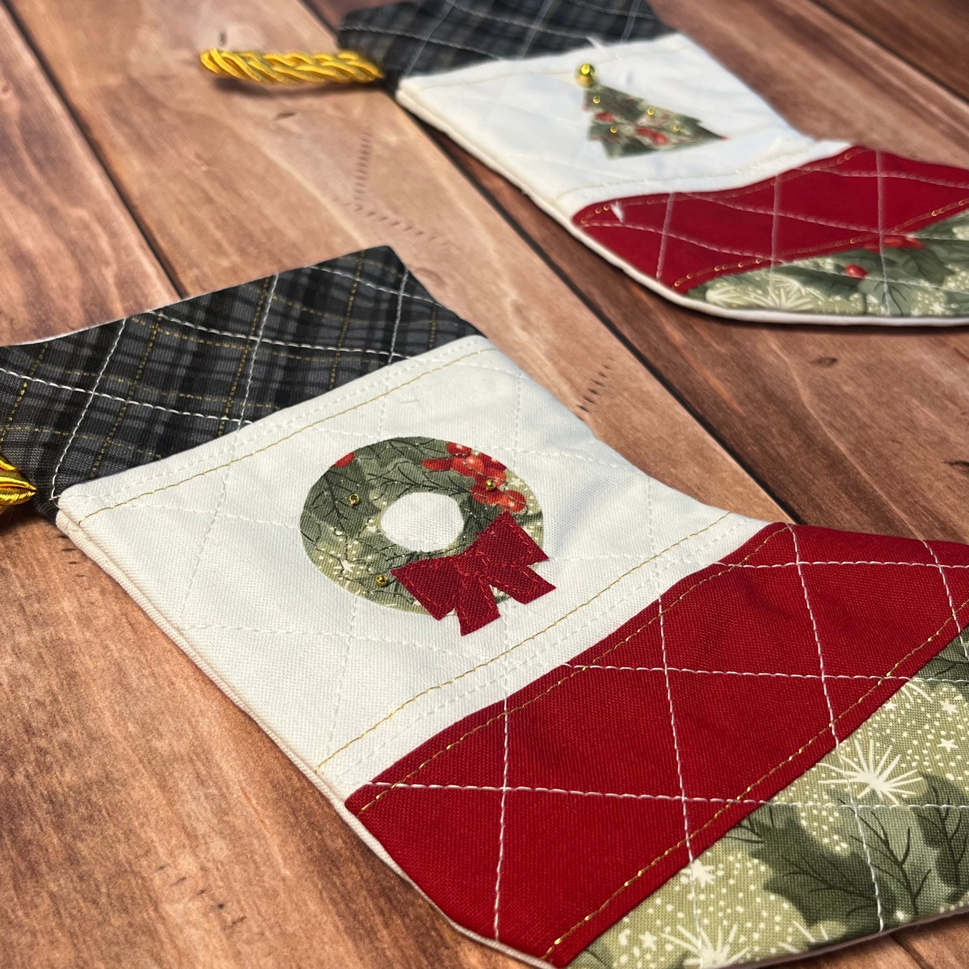 Mini Stockings - Classic Christmas Set of Two (Wreath and Tree)