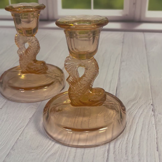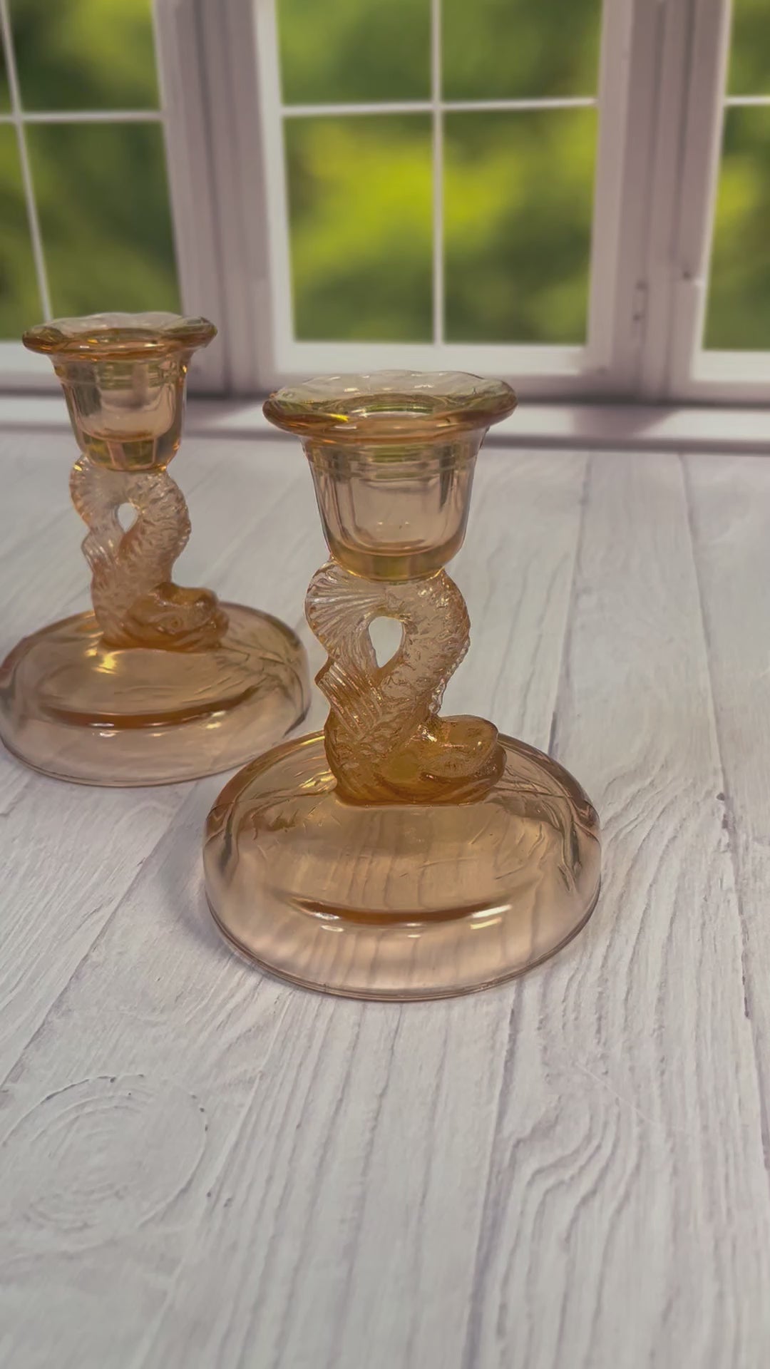 Pink Dolphin Depression Glass Candlesticks – Set of Two