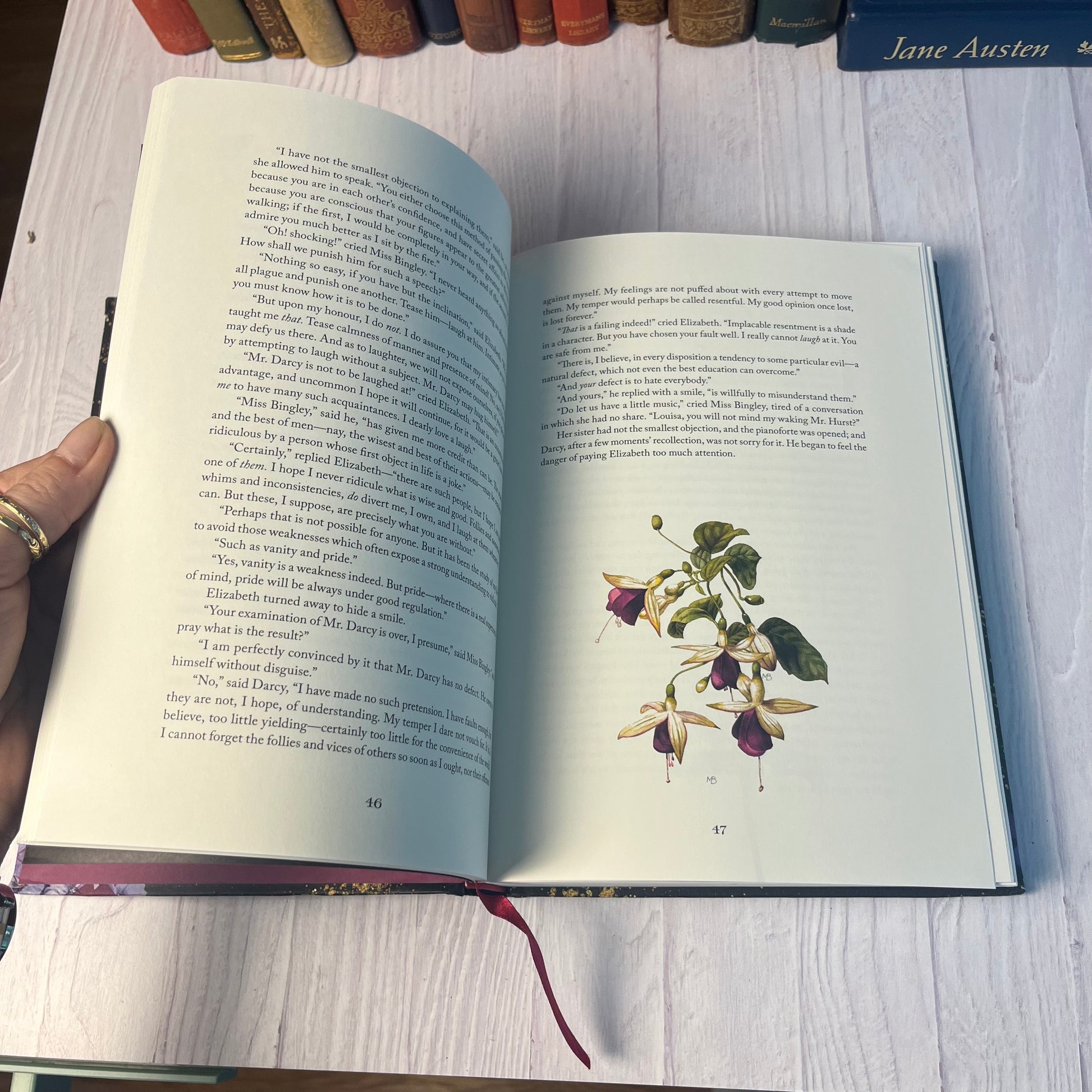 This large 10" x 7" edition of Pride and Prejudice is truly one of a kind. The book is bound in a gorgeous floral cover with gold lettering, and inside you’ll find color illustrations by Marjolein Bastin—delicate watercolor botanicals that bring Austen’s world to life.