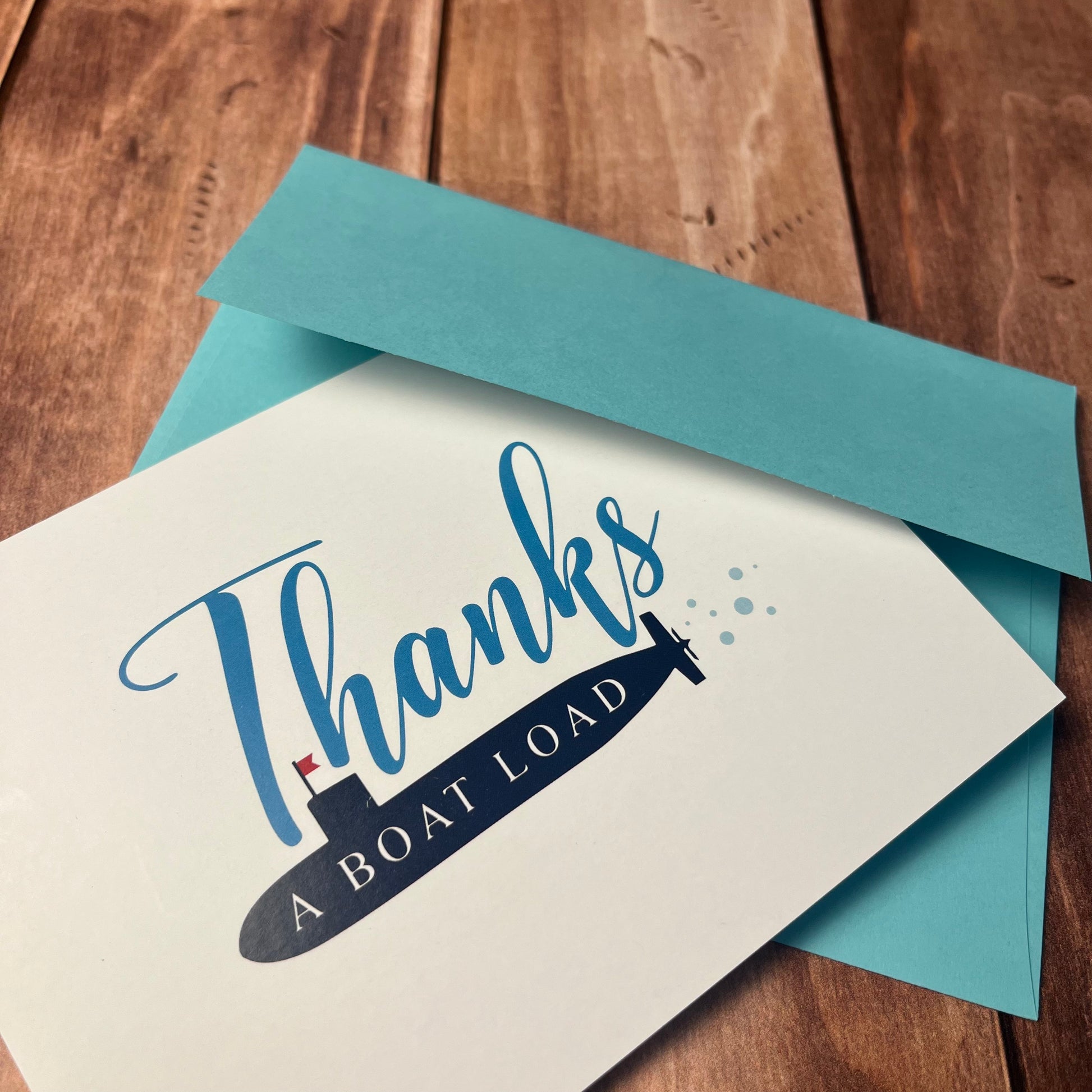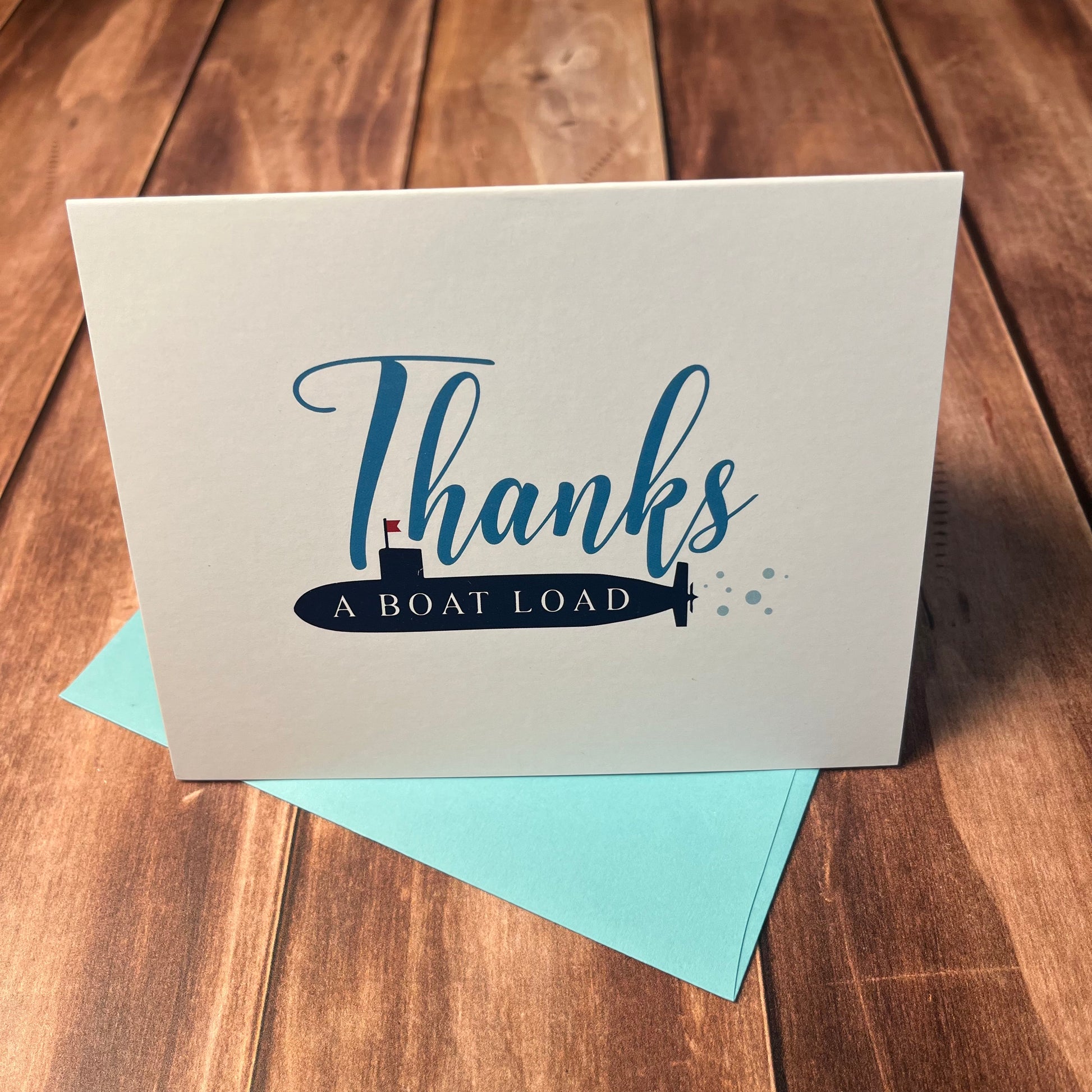 Show your gratitude with a nautical twist! This set of 10 thank you cards features a playful submarine design with the message “Thanks a Boatload.” Perfect for Navy families, ocean lovers, or anyone who enjoys a touch of whimsy, these cards are a fun way to make your appreciation stand out.