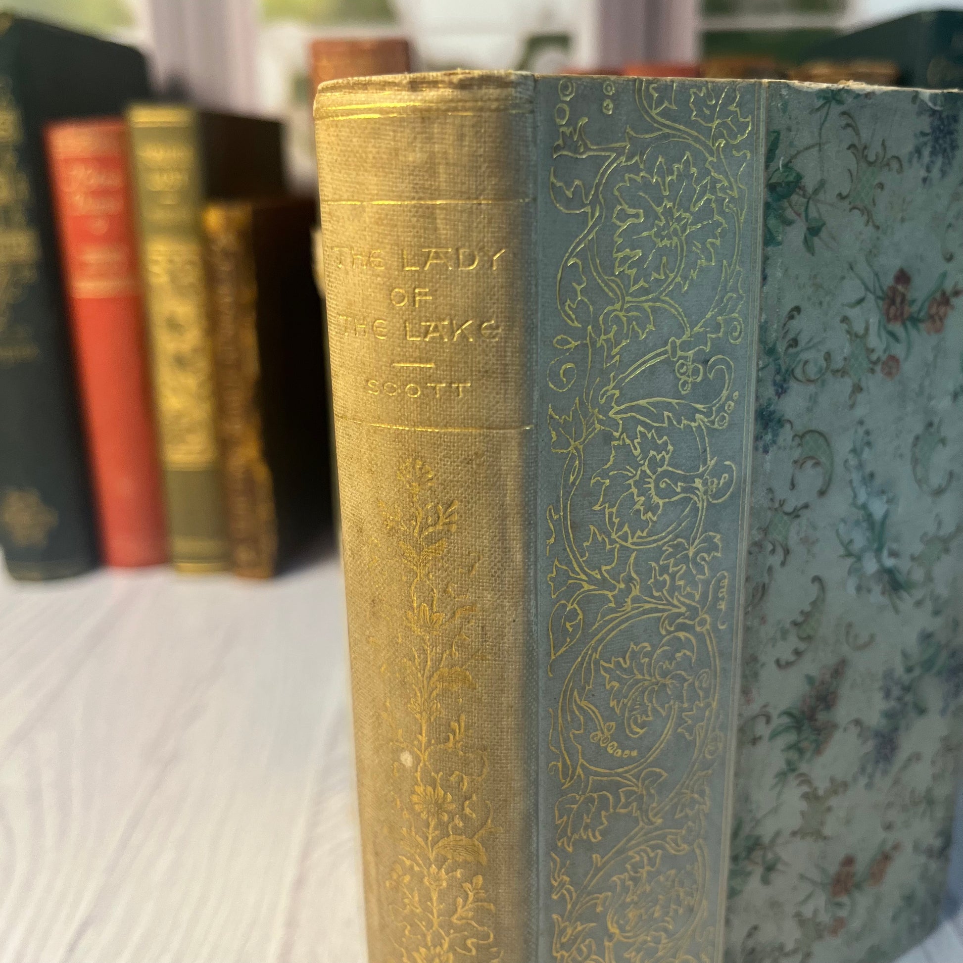 This 1892 edition of The Lady of the Lake, published by T. Y. Crowell & Co., is a true 19th-century treasure. Measuring 4" x 6", it is bound in a floral cloth cover with gold scrollwork on the spine—a beautiful example of the decorative binding style so beloved in the late Victorian era. The cover shows some wear, but rather than detract, it adds to the old-world charm of this volume. The pages are in excellent shape, and the spine remains strong after more than 130 years. I found this buried at a massive local used bookstore, and it might be one of my favorite old books i've ever uncovered!